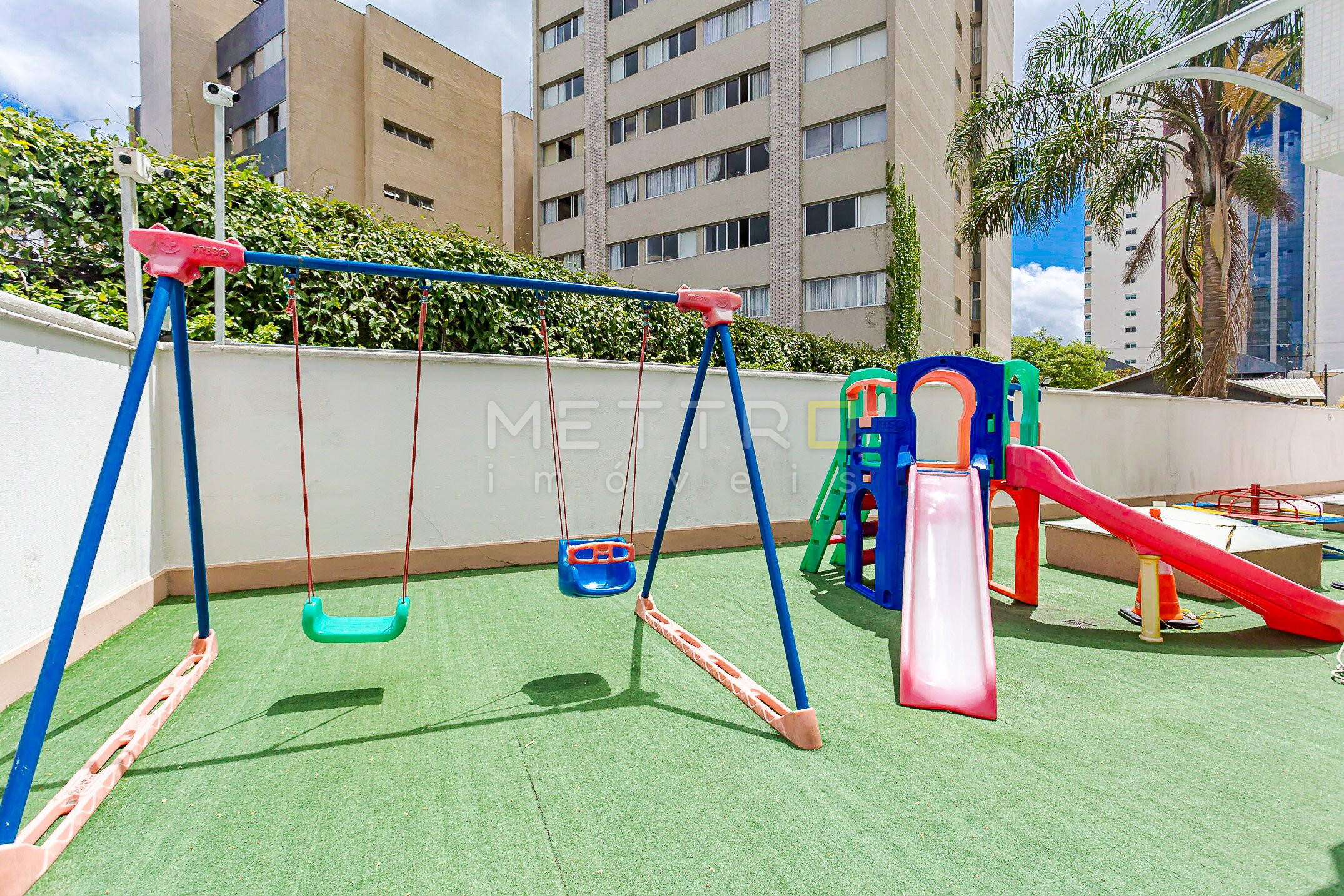 O condomínio com ótima infraestrutura, salão de festas, academia, brinquedoteca, parquinho e amplo pátio.